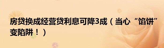 大家好,綜合小編來為大家講解下。房貸換成經營貸利息可降3成,當心“餡餅”變陷阱!很多人還不知道,現在讓我們一起來看看吧!