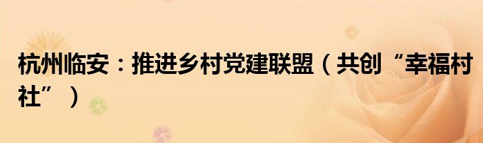 大家好,綜合小編來為大家講解下。杭州臨安:推進鄉村黨建聯盟,共創“幸福村社”很多人還不知道,現在讓我們一起來看看吧!