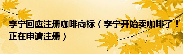 大家好,綜合小編來為大家講解下。李寧回應注冊咖啡商標,李寧開始賣咖啡了!正在申請注冊很多人還不知道,現在讓我們一起來看看吧!