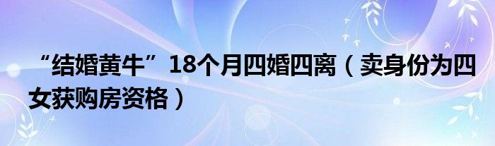 大家好,綜合小編來為大家講解下?!敖Y婚黃牛”18個月四婚四離,賣身份為四女獲購房資格很多人還不知道,現在讓我們一起來看看吧!