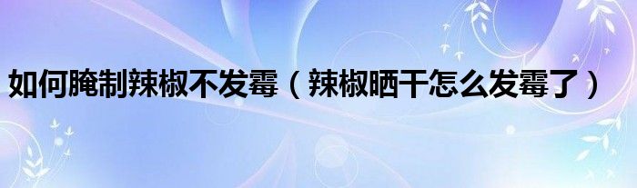大家好,綜合小編來為大家講解下。如何腌制辣椒不發霉,辣椒曬干怎么發霉了很多人還不知道,現在讓我們一起來看看吧!