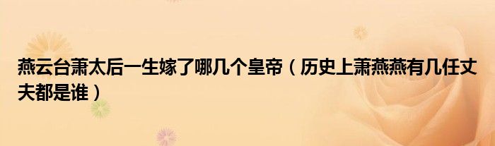 大家好,綜合小編來為大家講解下。燕云臺蕭太后一生嫁了哪幾個皇帝,歷史上蕭燕燕有幾任丈夫都是誰很多人還不知道,現在讓我們一起來看看吧!