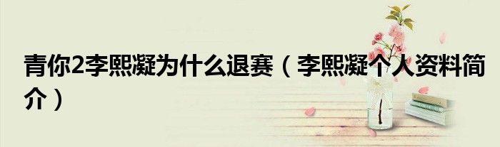 大家好,綜合小編來(lái)為大家講解下。青你2李熙凝為什么退賽,李熙凝個(gè)人資料簡(jiǎn)介很多人還不知道,現(xiàn)在讓我們一起來(lái)看看吧!