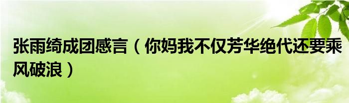 大家好,綜合小編來為大家講解下。張雨綺成團感言,你媽我不僅芳華絕代還要乘風(fēng)破浪很多人還不知道,現(xiàn)在讓我們一起來看看吧!