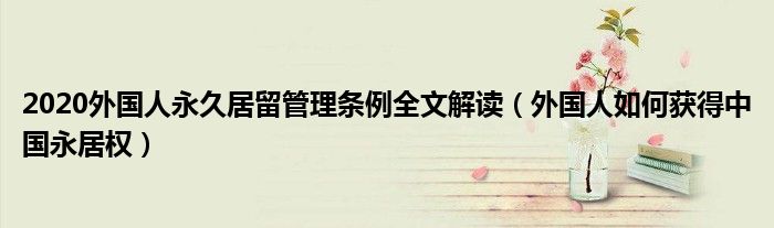 大家好,綜合小編來為大家講解下。2020外國人永久居留管理條例全文解讀,外國人如何獲得中國永居權很多人還不知道,現在讓我們一起來看看吧!
