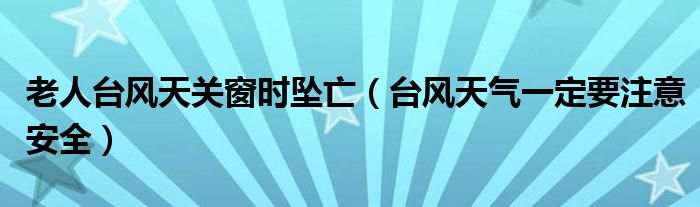 大家好,綜合小編來為大家講解下。老人臺風天關窗時墜亡,臺風天氣一定要注意安全很多人還不知道,現(xiàn)在讓我們一起來看看吧!