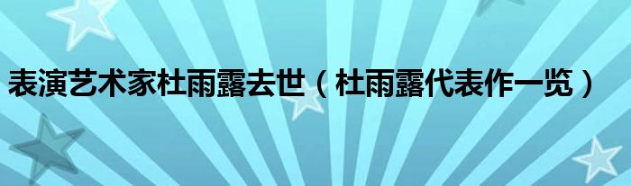 大家好,綜合小編來為大家講解下。表演藝術家杜雨露去世,杜雨露代表作一覽很多人還不知道,現在讓我們一起來看看吧!