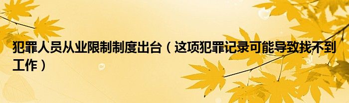 大家好,綜合小編來(lái)為大家講解下。犯罪人員從業(yè)限制制度出臺(tái),這項(xiàng)犯罪記錄可能導(dǎo)致找不到工作很多人還不知道,現(xiàn)在讓我們一起來(lái)看看吧!