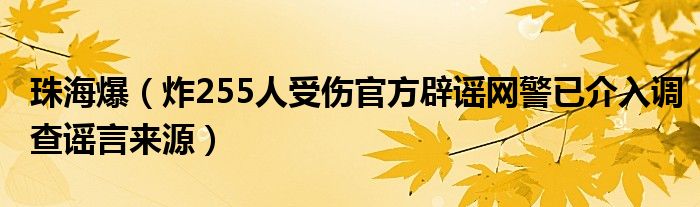大家好,綜合小編來為大家講解下。珠海爆,炸255人受傷官方辟謠網警已介入調查謠言來源很多人還不知道,現在讓我們一起來看看吧!
