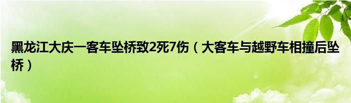 大家好,綜合小編來(lái)為大家講解下。黑龍江大慶一客車(chē)墜橋致2死7傷,大客車(chē)與越野車(chē)相撞后墜橋很多人還不知道,現(xiàn)在讓我們一起來(lái)看看吧!