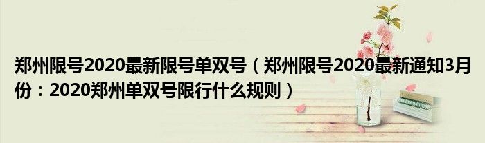 大家好,綜合小編來為大家講解下。鄭州限號2020最新限號單雙號,鄭州限號2020最新通知3月份:2020鄭州單雙號限行什么規則很多人還不知道,現在讓我們一起來看看吧!