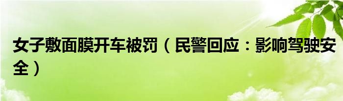 大家好,綜合小編來為大家講解下。女子敷面膜開車被罰,民警回應(yīng):影響駕駛安全很多人還不知道,現(xiàn)在讓我們一起來看看吧!