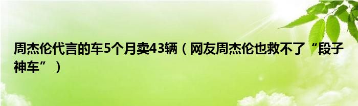 大家好,綜合小編來為大家講解下。周杰倫代言的車5個月賣43輛,網友周杰倫也救不了“段子神車”很多人還不知道,現在讓我們一起來看看吧!