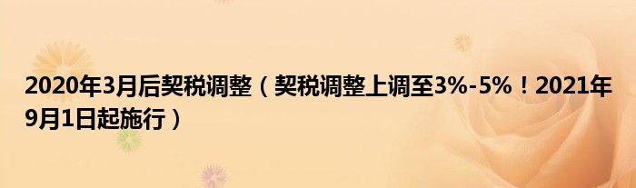 大家好,綜合小編來為大家講解下。2020年3月后契稅調(diào)整,契稅調(diào)整上調(diào)至3%-5%!2021年9月1日起施行很多人還不知道,現(xiàn)在讓我們一起來看看吧!