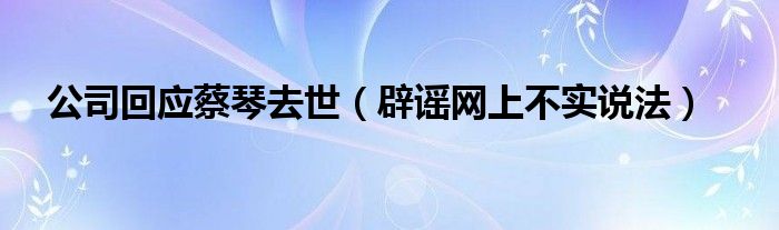 大家好,綜合小編來為大家講解下。公司回應蔡琴去世,辟謠網上不實說法很多人還不知道,現在讓我們一起來看看吧!