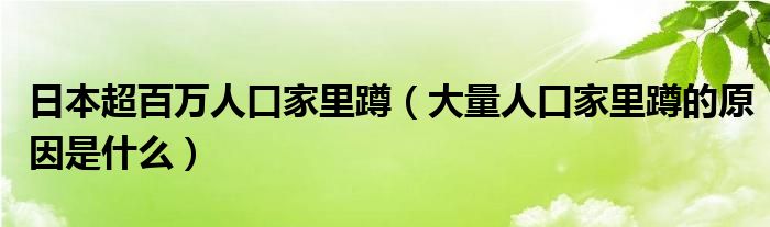 大家好,綜合小編來為大家講解下。日本超百萬人口家里蹲,大量人口家里蹲的原因是什么很多人還不知道,現在讓我們一起來看看吧!