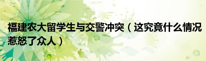 大家好,綜合小編來為大家講解下。福建農(nóng)大留學(xué)生與交警沖突,這究竟什么情況惹怒了眾人很多人還不知道,現(xiàn)在讓我們一起來看看吧!