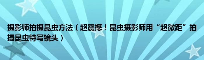 大家好,綜合小編來為大家講解下。攝影師拍攝昆蟲方法,超震撼!昆蟲攝影師用“超微距”拍攝昆蟲特寫鏡頭很多人還不知道,現在讓我們一起來看看吧!