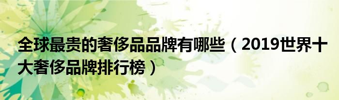 大家好,綜合小編來為大家講解下。全球最貴的奢侈品品牌有哪些,2019世界十大奢侈品牌排行榜很多人還不知道,現在讓我們一起來看看吧!