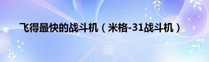 大家好,綜合小編來為大家講解下。飛得最快的戰(zhàn)斗機,米格-31戰(zhàn)斗機很多人還不知道,現在讓我們一起來看看吧!