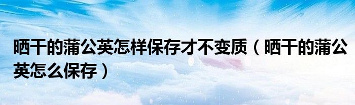 大家好,綜合小編來(lái)為大家講解下。曬干的蒲公英怎樣保存才不變質(zhì),曬干的蒲公英怎么保存很多人還不知道,現(xiàn)在讓我們一起來(lái)看看吧!