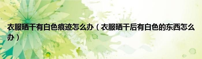 大家好,綜合小編來為大家講解下。衣服曬干有白色痕跡怎么辦,衣服曬干后有白色的東西怎么辦很多人還不知道,現在讓我們一起來看看吧!