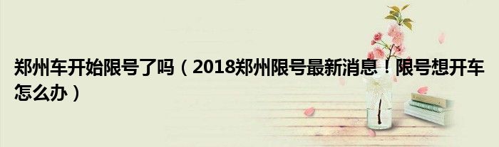 大家好,綜合小編來為大家講解下。鄭州車開始限號了嗎,2018鄭州限號最新消息!限號想開車怎么辦很多人還不知道,現在讓我們一起來看看吧!