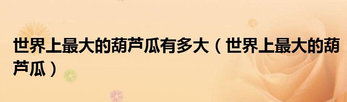 大家好,綜合小編來為大家講解下。世界上最大的葫蘆瓜有多大,世界上最大的葫蘆瓜很多人還不知道,現在讓我們一起來看看吧!