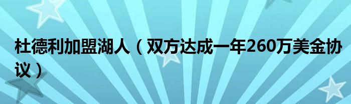 大家好,綜合小編來為大家講解下。杜德利加盟湖人,雙方達成一年260萬美金協議很多人還不知道,現在讓我們一起來看看吧!