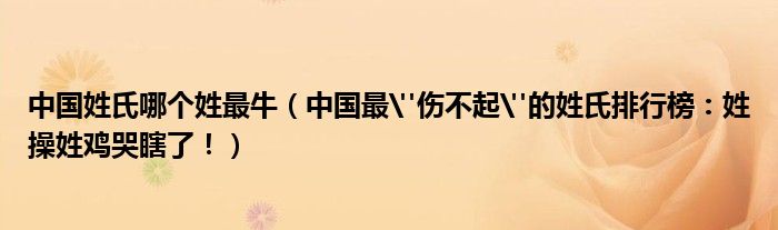 大家好,綜合小編來為大家講解下。中國姓氏哪個姓最牛,中國最"傷不起"的姓氏排行榜:姓操姓雞哭瞎了!很多人還不知道,現在讓我們一起來看看吧!