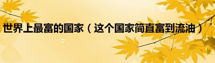 大家好,綜合小編來為大家講解下。世界上最富的國家,這個國家簡直富到流油很多人還不知道,現在讓我們一起來看看吧!