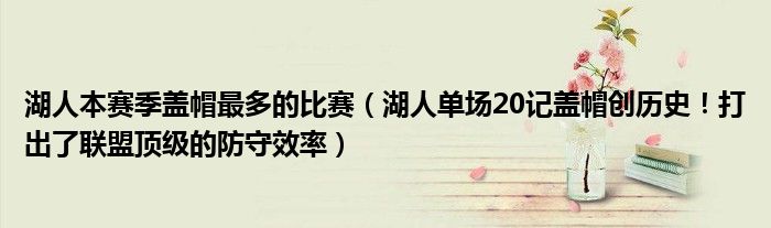 大家好,綜合小編來為大家講解下。湖人本賽季蓋帽最多的比賽,湖人單場20記蓋帽創(chuàng)歷史!打出了聯(lián)盟頂級的防守效率很多人還不知道,現(xiàn)在讓我們一起來看看吧!