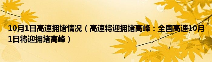 大家好,綜合小編來為大家講解下。10月1日高速擁堵情況,高速將迎擁堵高峰:全國高速10月1日將迎擁堵高峰很多人還不知道,現在讓我們一起來看看吧!