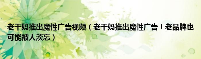 大家好,綜合小編來為大家講解下。老干媽推出魔性廣告視頻,老干媽推出魔性廣告!老品牌也可能被人淡忘很多人還不知道,現在讓我們一起來看看吧!