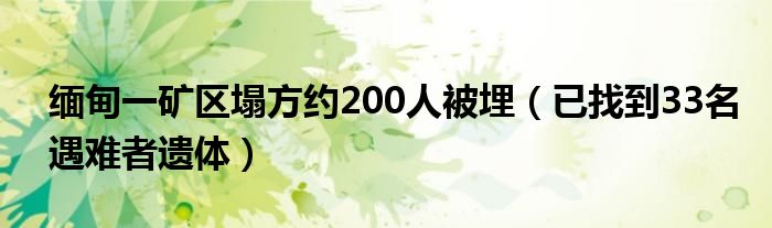 大家好,綜合小編來為大家講解下。緬甸一礦區塌方約200人被埋,已找到33名遇難者遺體很多人還不知道,現在讓我們一起來看看吧!