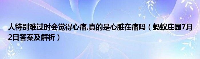 大家好,綜合小編來為大家講解下。人特別難過時會覺得心痛,真的是心臟在痛嗎,螞蟻莊園7月2日答案及解析很多人還不知道,現在讓我們一起來看看吧!