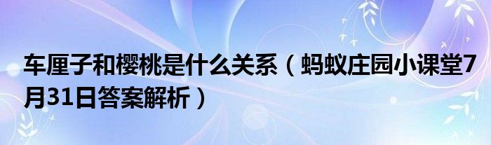 大家好,綜合小編來為大家講解下。車厘子和櫻桃是什么關系,螞蟻莊園小課堂7月31日答案解析很多人還不知道,現(xiàn)在讓我們一起來看看吧!