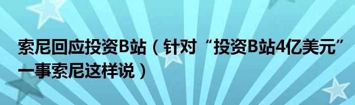 大家好,綜合小編來為大家講解下。索尼回應投資B站,針對“投資B站4億美元”一事索尼這樣說很多人還不知道,現在讓我們一起來看看吧!
