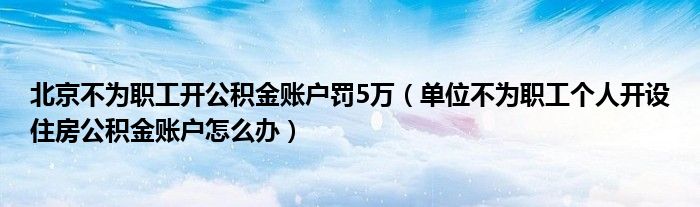 大家好,綜合小編來為大家講解下。北京不為職工開公積金賬戶罰5萬,單位不為職工個人開設住房公積金賬戶怎么辦很多人還不知道,現在讓我們一起來看看吧!