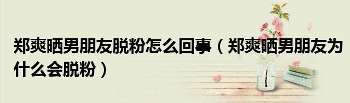 大家好,綜合小編來為大家講解下。鄭爽曬男朋友脫粉怎么回事,鄭爽曬男朋友為什么會脫粉很多人還不知道,現在讓我們一起來看看吧!