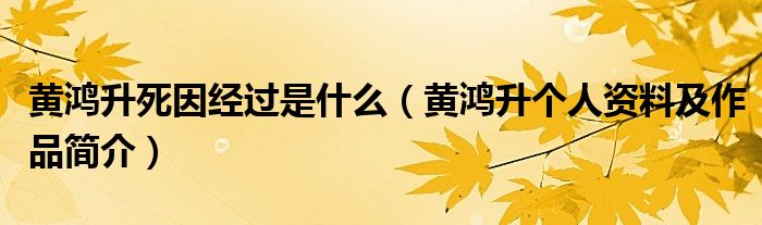 大家好,綜合小編來為大家講解下。黃鴻升死因經過是什么,黃鴻升個人資料及作品簡介很多人還不知道,現在讓我們一起來看看吧!