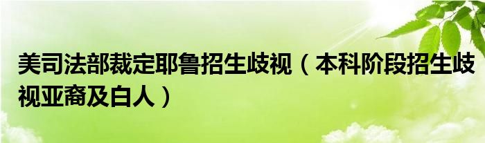 大家好,綜合小編來為大家講解下。美司法部裁定耶魯招生歧視,本科階段招生歧視亞裔及白人很多人還不知道,現在讓我們一起來看看吧!