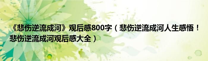大家好,綜合小編來為大家講解下。《悲傷逆流成河》觀后感800字,悲傷逆流成河人生感悟!悲傷逆流成河觀后感大全很多人還不知道,現在讓我們一起來看看吧!