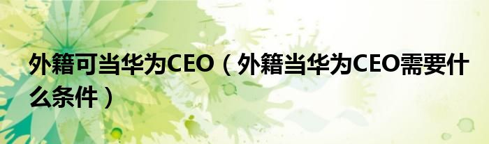 大家好,綜合小編來為大家講解下。外籍可當華為CEO,外籍當華為CEO需要什么條件很多人還不知道,現在讓我們一起來看看吧!