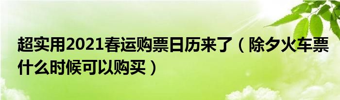 大家好,綜合小編來為大家講解下。超實用2021春運購票日歷來了,除夕火車票什么時候可以購買很多人還不知道,現在讓我們一起來看看吧!