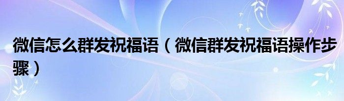 大家好,綜合小編來為大家講解下。微信怎么群發祝福語,微信群發祝福語操作步驟很多人還不知道,現在讓我們一起來看看吧!