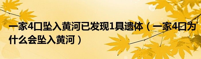 大家好,綜合小編來為大家講解下。一家4口墜入黃河已發現1具遺體,一家4口為什么會墜入黃河很多人還不知道,現在讓我們一起來看看吧!