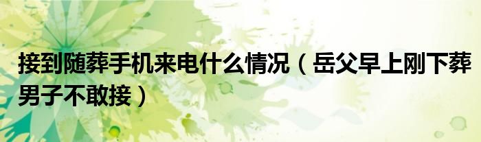 大家好,綜合小編來為大家講解下。接到隨葬手機來電什么情況,岳父早上剛下葬男子不敢接很多人還不知道,現在讓我們一起來看看吧!