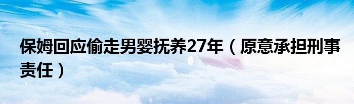 大家好,綜合小編來為大家講解下。保姆回應偷走男嬰撫養27年,原意承擔刑事責任很多人還不知道,現在讓我們一起來看看吧!