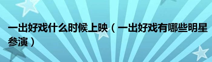 大家好,綜合小編來為大家講解下。一出好戲什么時(shí)候上映,一出好戲有哪些明星參演很多人還不知道,現(xiàn)在讓我們一起來看看吧!